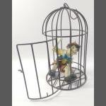 Modern resin DISNEY style Pinocchio model figure within a metal hanging cage - figure dimension 23cm tall approx - cage dimension 38cm tall approx - the item still has the barcode to the base!