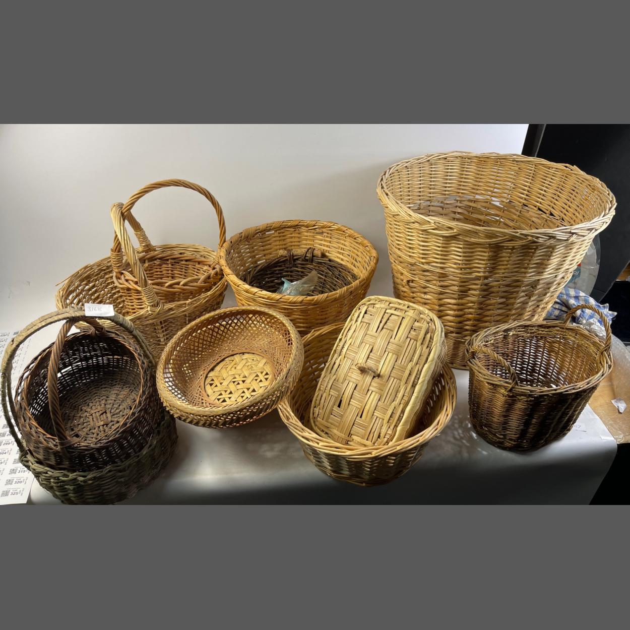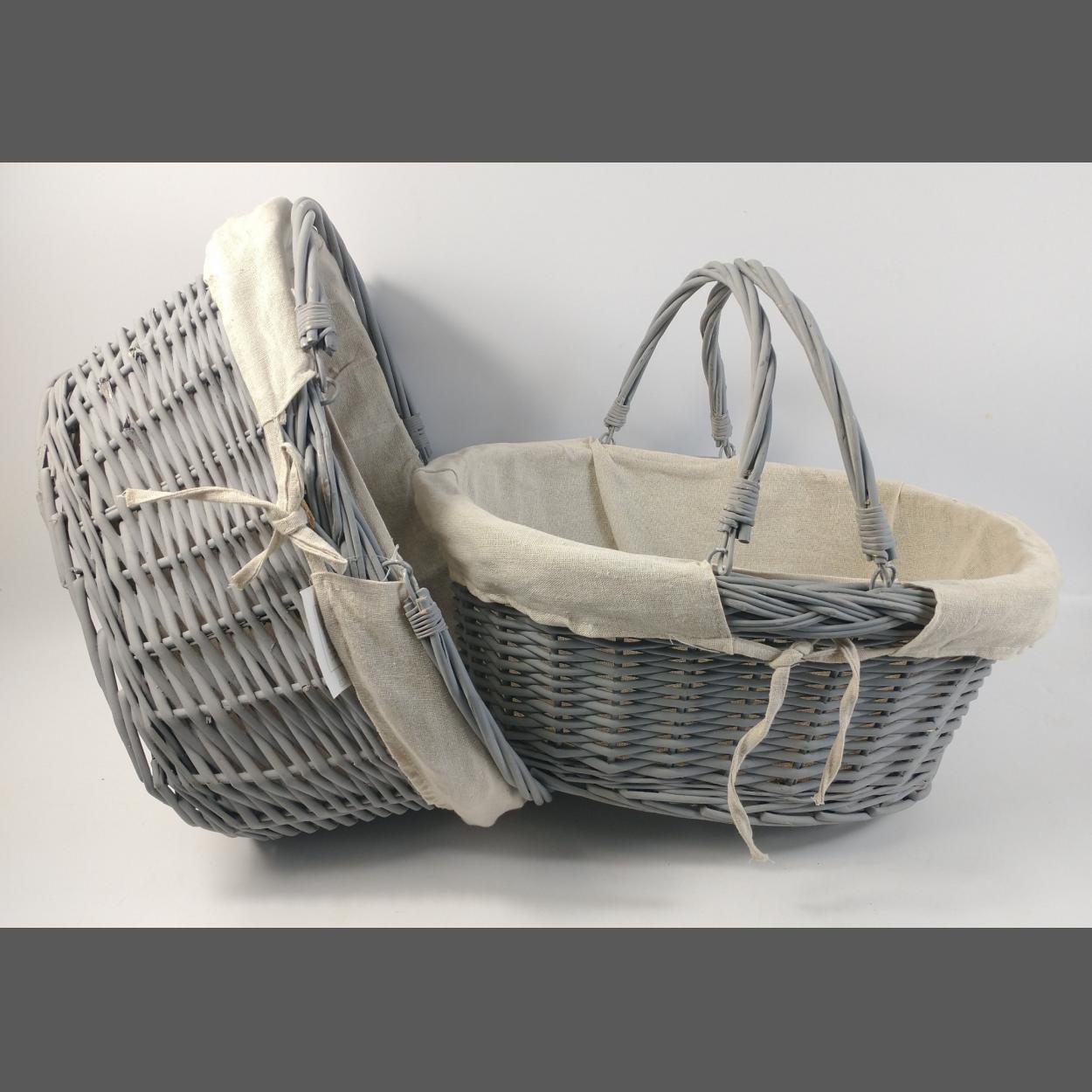 Two twin-handled grey lined wicker baskets 40x30x20cm approx