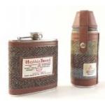 A HARRIS TWEED hip flask plus one other with cup for a nip.