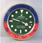 ROLEX CLOCK wall GMT MASTER II Pepsi Bezel, green face , 34cm Dealer Display Concessionary Clock advertising piece. Quartz movement.