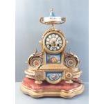 ANTIQUE Atlas French mantle clock in gilded bronze and brass adorned with floral decoration - dimensions 40cm height x 30cm width - hour hand broken in half otherwise on inspection looks OK - clock has its key, pendulum is outwith the clock - clock is untested for working