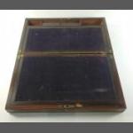 Antique wooden writing slope box. Attractive inlay, some wear and one loose hinge. 45cm x 25cm x 13cm approx