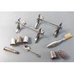 A silver lot comprising 5 thimbles, 2 knife rests with Sheffield hallmarks and others. Total weight 118g approx