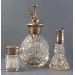 A silver collared scent atomiser (indistinct Birmingham stamps) and two other small bottles A/F.
