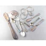Small lot of silver hallmarked or stamped items to include silver lid, bangles, condiment spoons knife etc. Total gross weight 152g approx.