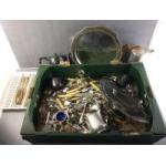 A box of assorted cutlery to include collectors spoons, knives, forks and much else.