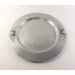 CARAVELA metal tray with oak leaf embossed design to rim. Large 45cm diameter approx and with light wear to surface.