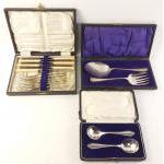 Three cased silver plated cutlery sets, Spoon pair, knife and fork sets.
