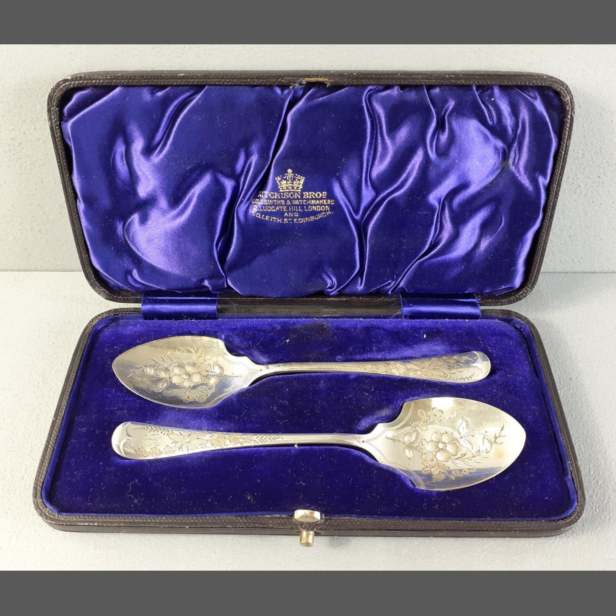 A cased set of silver hallmarked jam spoons. 14cm approx and gross weight 45g approx