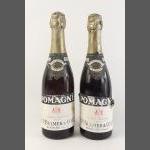 Two bottles of H.P. BULMER Pomagne Champagne Cider de Luxe half size bottles with contents. 1949 labels and foil with wear from storage.
