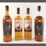 Two x 1 litre bottles of THE FAMOUS GROUSE (40% vol) and 2 x 1 litre bottles of 103 ETIQUETA NEGRA brandy (37% vol) (NB One opened)