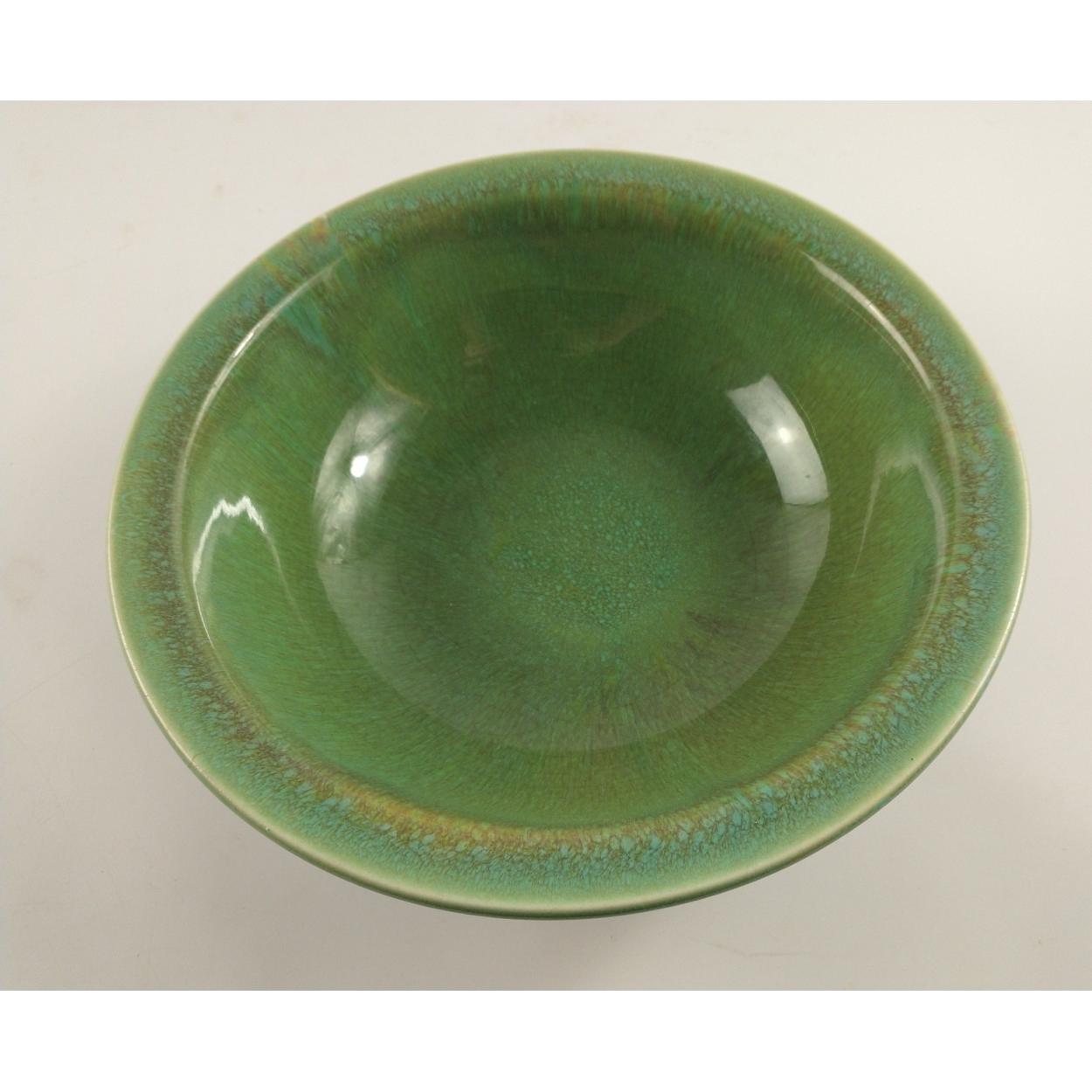 A CERAMIC glaze TURKISH KOTAHYA VERY LARGE RAISED BOWL (cost $2000) copy from a museum piece signed to base and comes with its velvet wooden case - STUNNING! Diameter 41cm x height 28cm