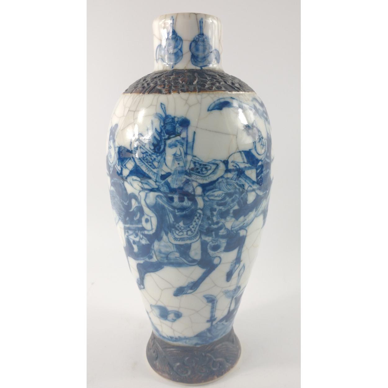 Antique Chinese Crackle Ware Glaze Baluster Vase circa 1900 decorated with scenes of warriors in battle! In good condition. 27cm tall