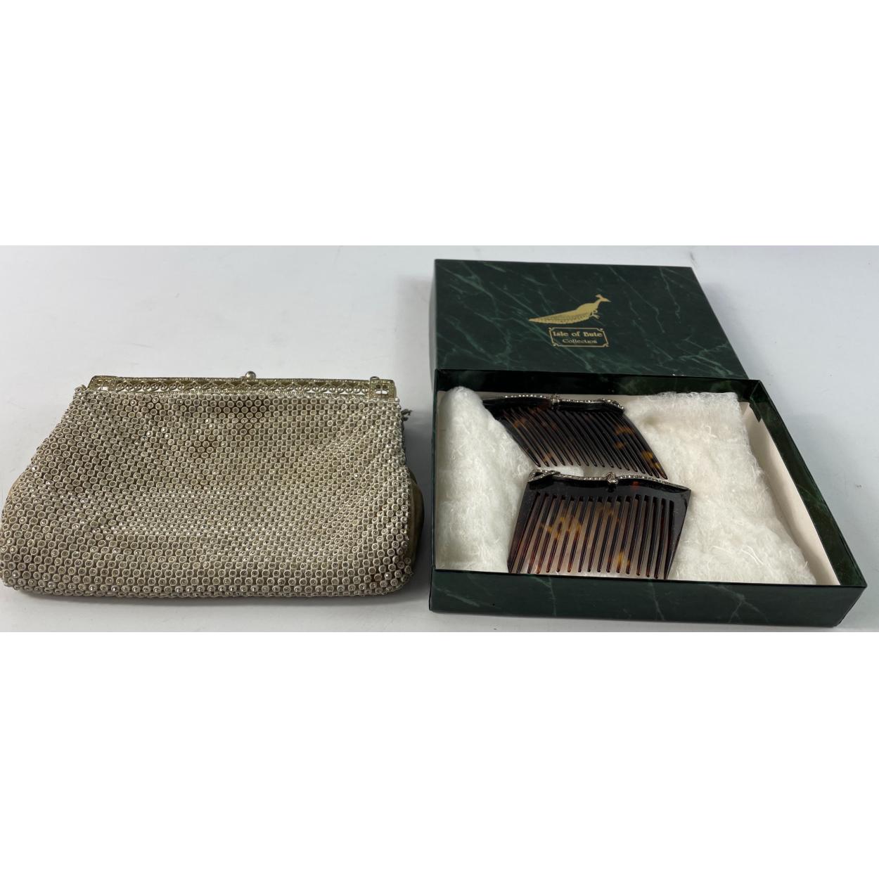 FROM A TIME GONE BY - small diamante evening clutch and a pair of hair combs with diamante trim.
