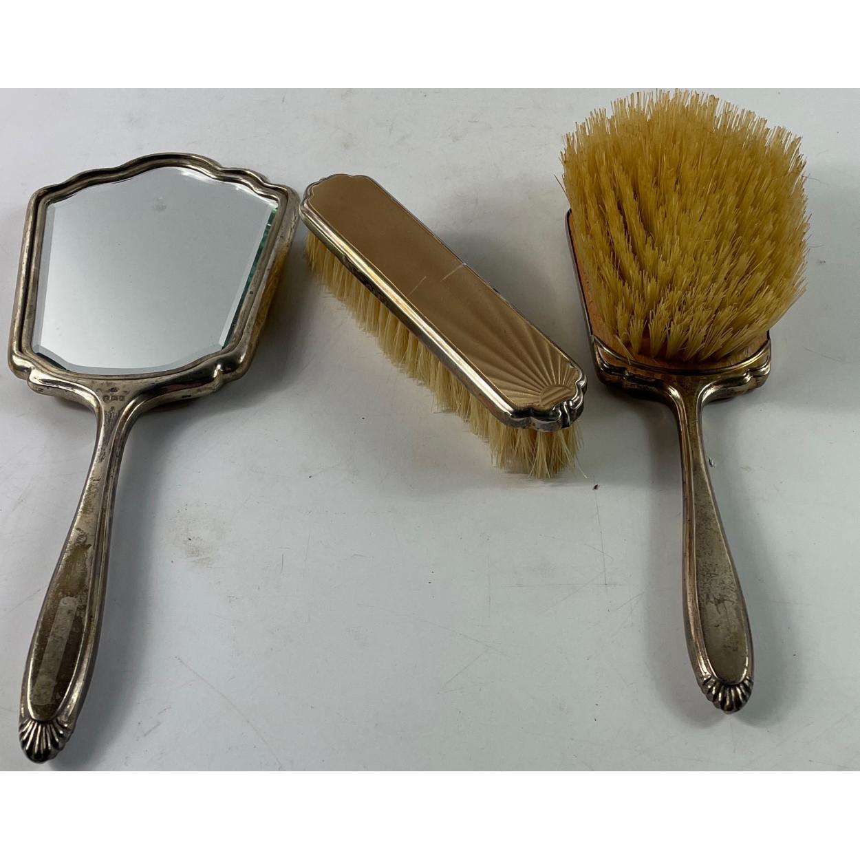 Vintage DRESSING TABLE SET consisting of EPNS hairbrush, hand mirror and clothes brush.