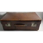 LEATHER SUITCASE of solid construction, certainly weighs more than the Easyjet hand luggage allowance! 60 x 40 x 20cm approx.