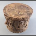 A stoneware TOBACCO jar unusually shaped in the style of a log. 9cm tall approx.