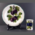 WEMYSS. Two original antique WEMYSS pieces, comprising 20cm plate and a 8cm high pot with minor chips to rim both in Plum design. Fine examples of this collectible Scottish pottery.