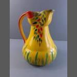 A WADEHEATH stylish water jug in pretty yellow and floral pattern. Stands 21cm tall approx and in lovely condition.