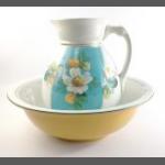 A large ewer and basin, ewer standing 27cm high approx and the basin 39cm approx. Both in good condition