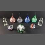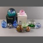 A mixed box of decorative items to include vases, glassware, and paperweights including a glass apple