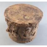 A stoneware TOBACCO jar unusually shaped in the style of a log. 9cm tall approx.