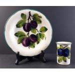WEMYSS. Two original antique WEMYSS pieces, comprising 20cm plate and a 8cm high pot with minor chips to rim both in Plum design. Fine examples of this collectible Scottish pottery.