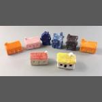 A collection of seven GLENSHEE POTTERY wonky bothies, (one with slight damage to the back), plus one fridge magnet. Tallest stands 6cm approx