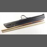 A RILEY pool cue soft case with a POT BLACK cue in good condition.