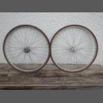 Two CAMPAGNOLO 27" bicycle wheels which appear to be in good used condition.