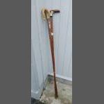 Two horn handled shepherds' crooks, one with carved thistle motif. Each 120cm long and in good condition.