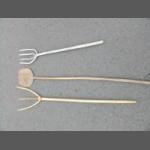 Fun and decorative oversize baker's oven (Pizza?) paddle and 2 x wooden hay forks. Very amusing and ornamental. The paddle measures in at a whopping 2 metres!