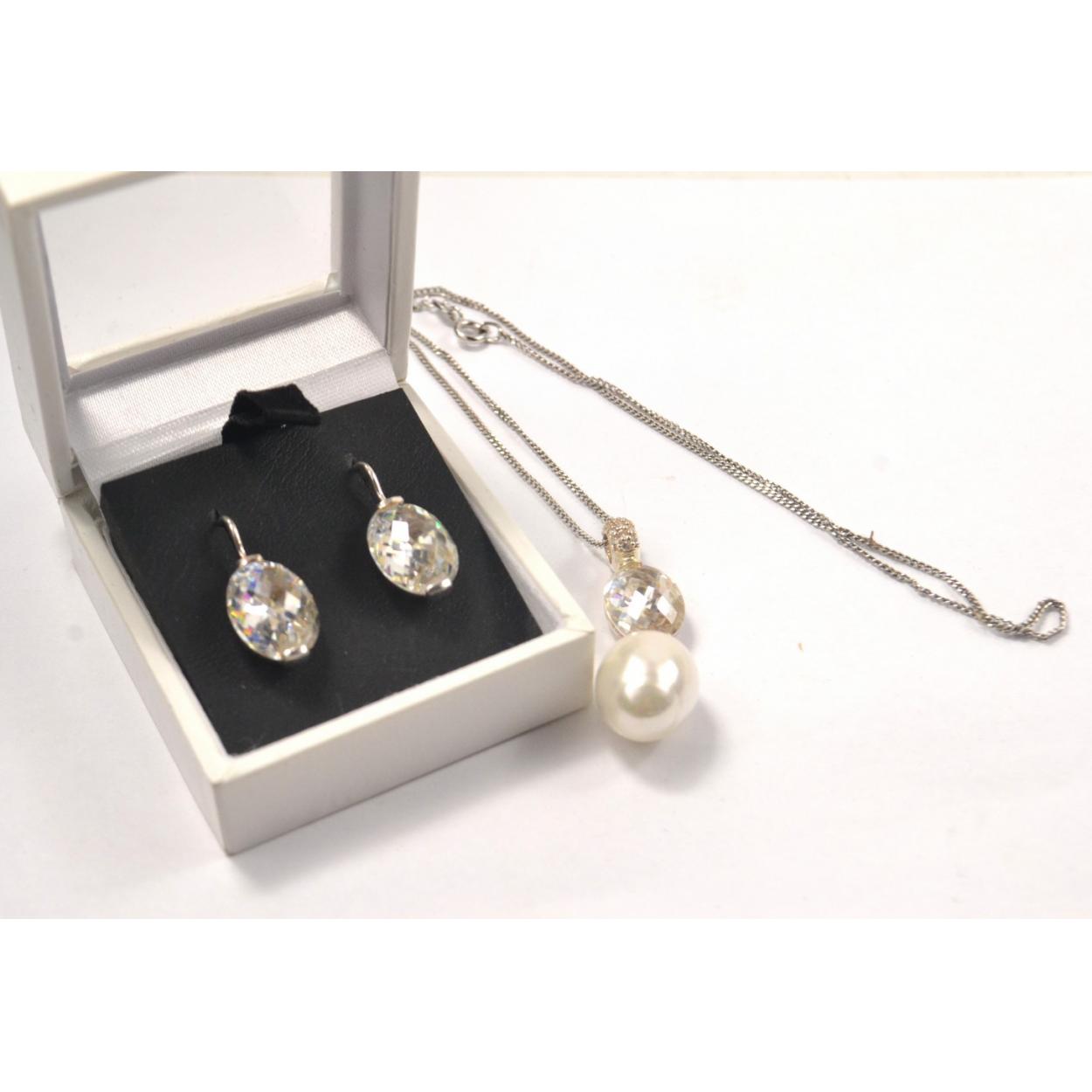 THOMAS SABO 925 stamped two jewellery items to include a pair of earrings with crystal orbs in their presentation jewellers case and a matching necklace in silver with an over sized pearl pendant with a crystal orb also - nice quality