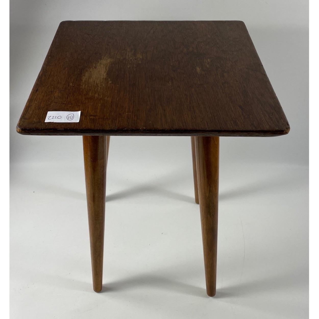 An IN VOGUE small square table on spindle legs height 18” x 12” square top approx