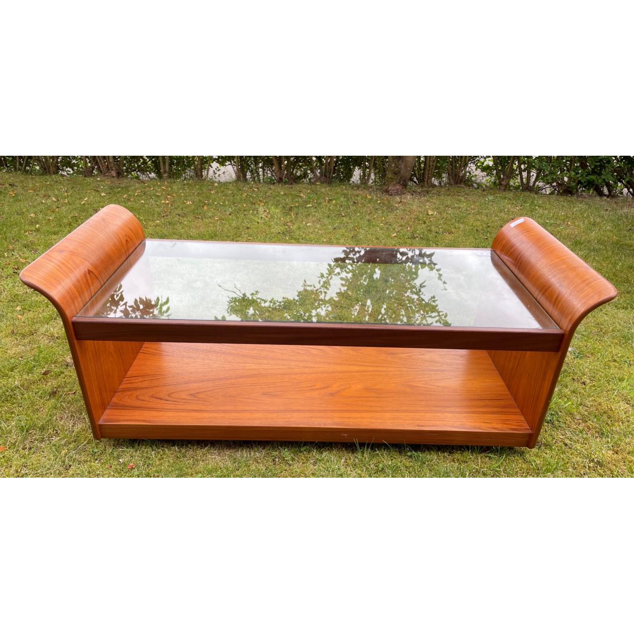A RETRO cocktail table with glazed top and black drinks tray on the bottom dimensions diameter 55cm x height 50cm approx