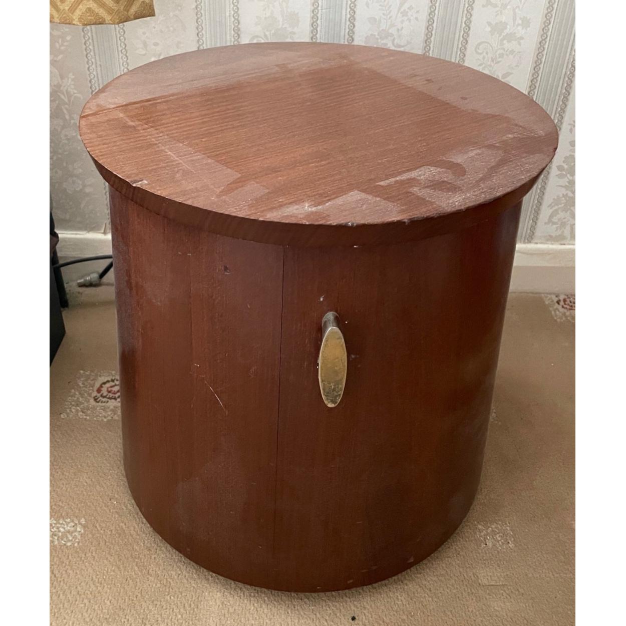 Drum table with drawers and ‘pull-open' drawer fronts dimensions 46cm diameter x 60cm height