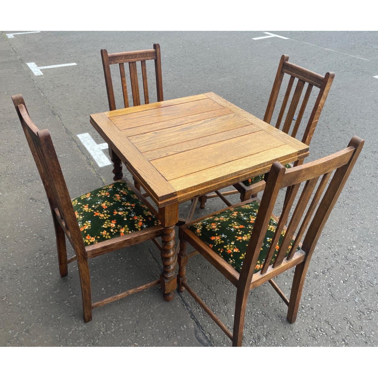 A c1930's/40's extending dining table and four chairs, table unextended 3ft square approx