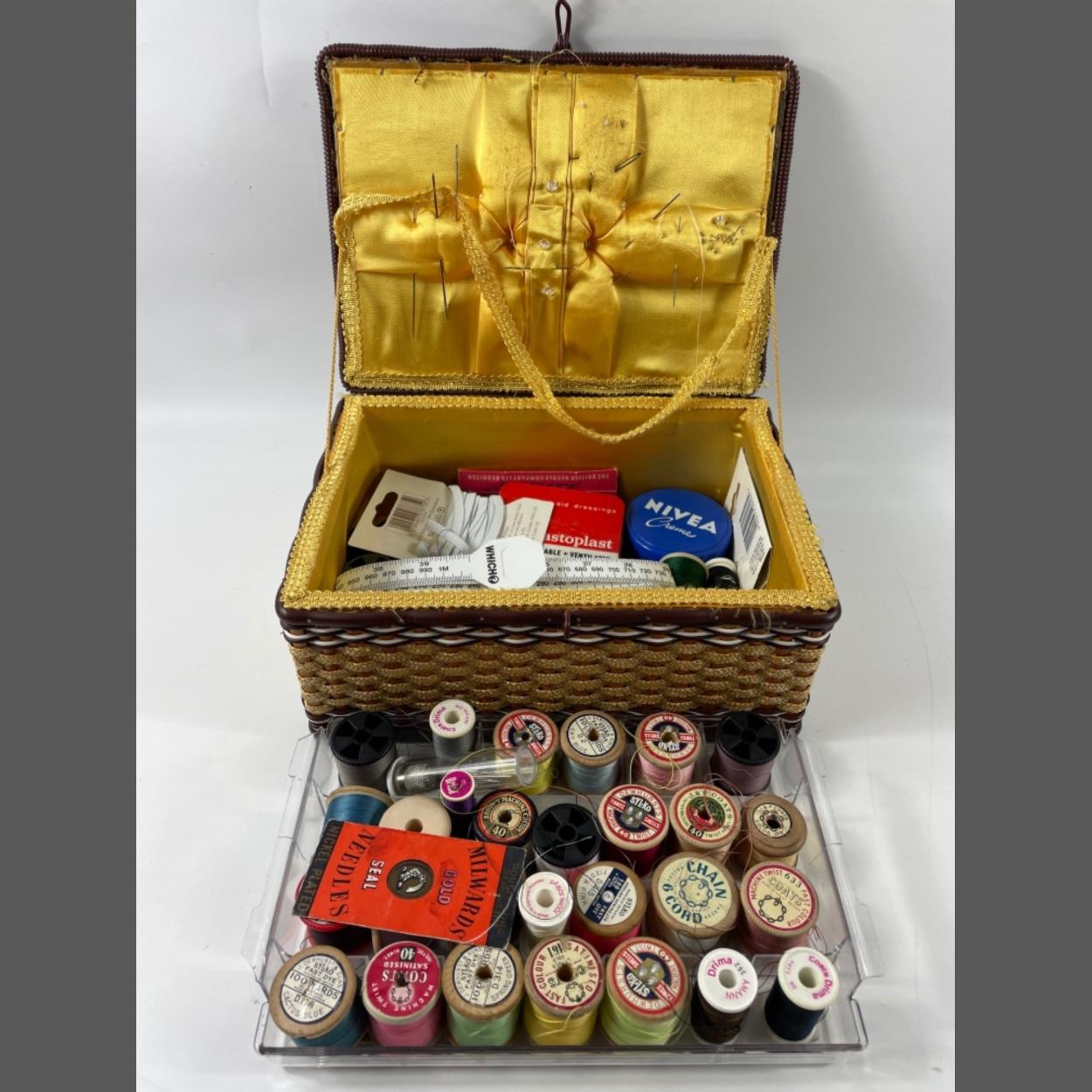 A nice antique ROSEWOOD lidded box with centred brass and mother of pearl inlay on the lid top - dimensions 35cm x 24cm x depth 13cm approx - currently used as a haberdashery box!