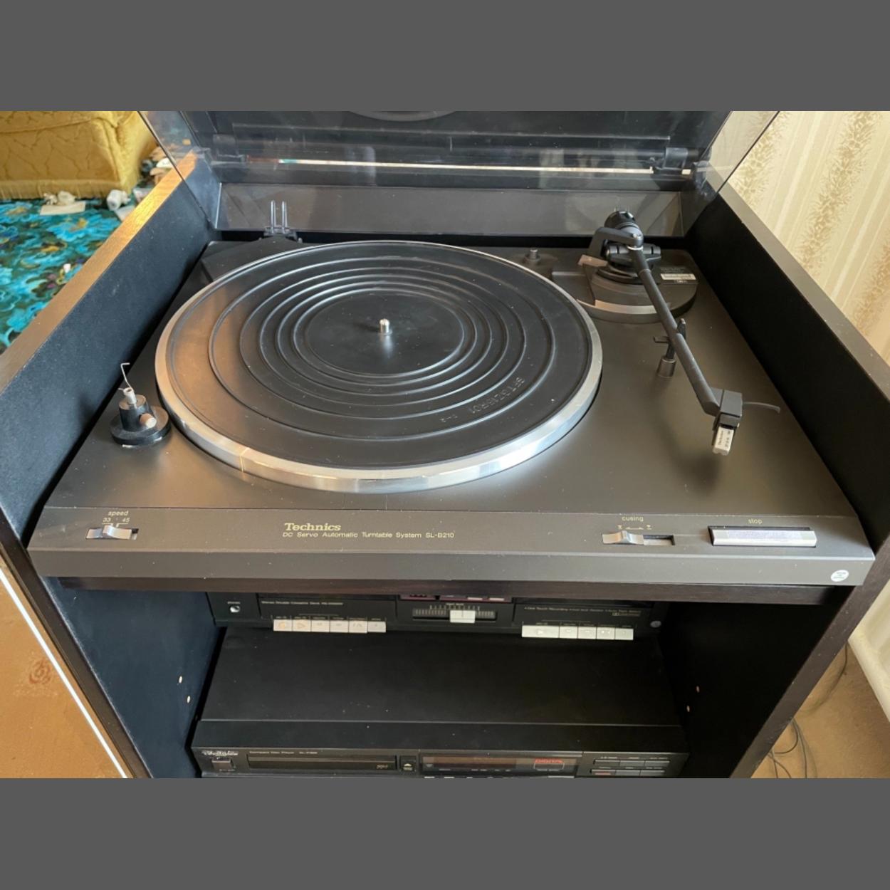 A c1980's TECHNICS media cabinet with a TECHNICS turntable No SL-B210 and an AMP SU-Z150 and also a SYNTHESISER ST-Z450L plus a twin cassette deck RS- D550W and also a TECHNICS SL-P300 Also two speakers 50 watt SB-3410 All items are TECHNICS