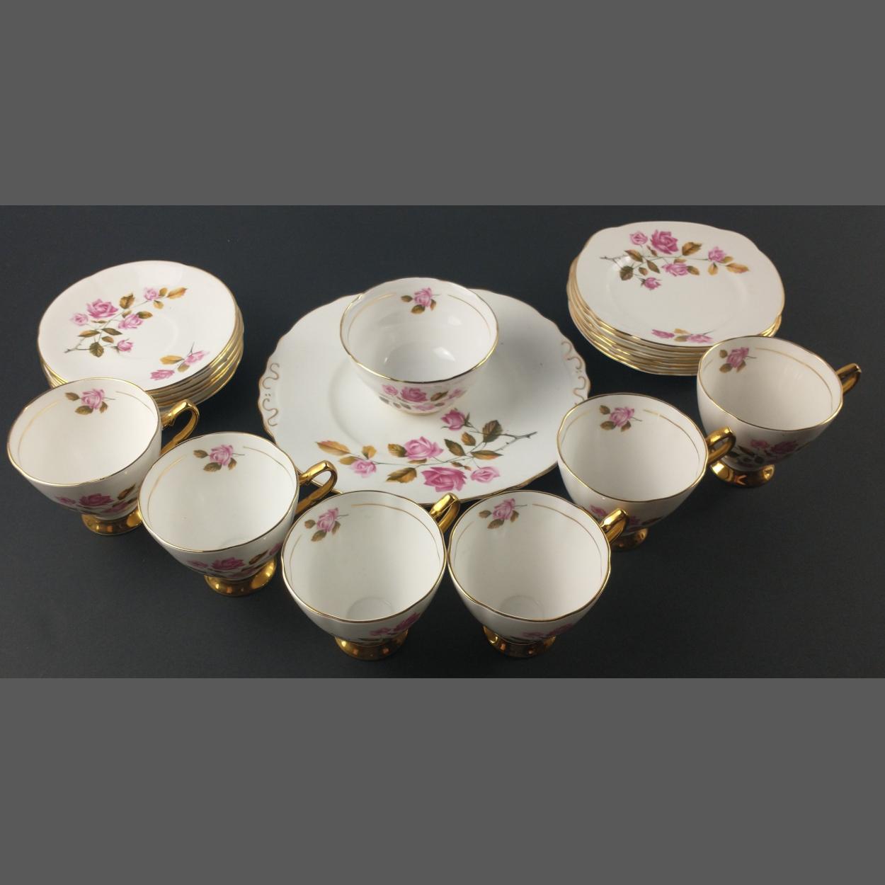 A ROYAL IMPERIAL tea service with a rose pattern to include 6 cups, 5 saucers, 6 side plates, 1 sandwich plate