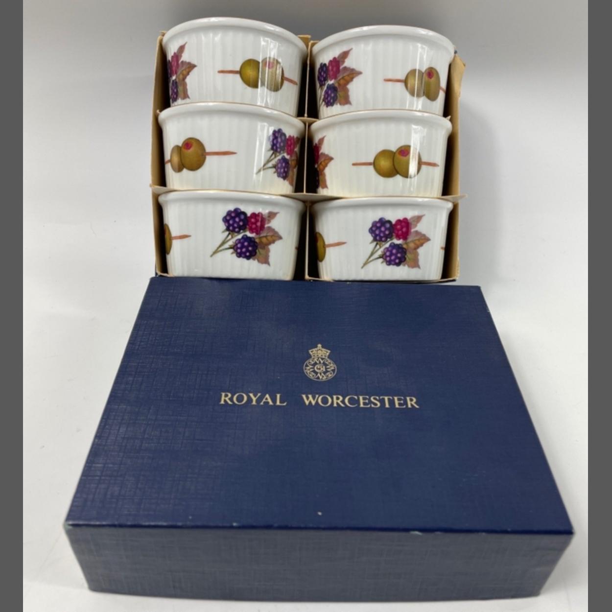 A vintage ROYAL WORCESTER ROANOKE part service to include 7 saucers (17.5cm), 1 saucer (17cm), 6 saucers (15cm), 9 bowls (16cm), 6 large cups (10cm dia, one cracked), 4 cups (9cm), 2 plates (27cm), 1 plate (23.5cm), 2 plates (20cm), 2 plates (18cm), 1 milk jug (15cm high), 1 sugar bowl