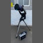 FIX YOUR EYES ON NEW DISCOVERIES WITHIN OUR UNIVERSE! A TOP QUALITY MEADE LX10 EMC telescope(D=203.2mm) and a SUBSTANTIAL stainless steel tri-pod , serial number 841128 with electronic drive system. There are two boxes of instructions The 8in. Schmidt-Cassegrain optics with D=203.2mm, F=2000mm F/10, together with a series 3000 Plossl 25mm multi-coated eyepiece, a Dec Motor and a Meade tripod.