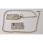 NICE QUALITY! 925 stamped silver with a 375 stamp also small dot of yellow gold on two similar PRIVATELY COMMISSIONED pendants with a 925 stamped silver chain link chain 52cm length total gross weight for the three items is 58.9g