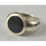 A VINTAGE oval shaped horn BOX with a 925 stamped and engraved cartouche in the centre of the lid (10cm x 6.5cm x 2cm)