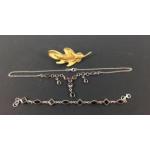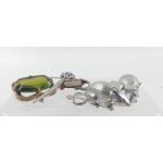 A pair of white metal mice (paperweights?) plus a small collection of costume jewellery