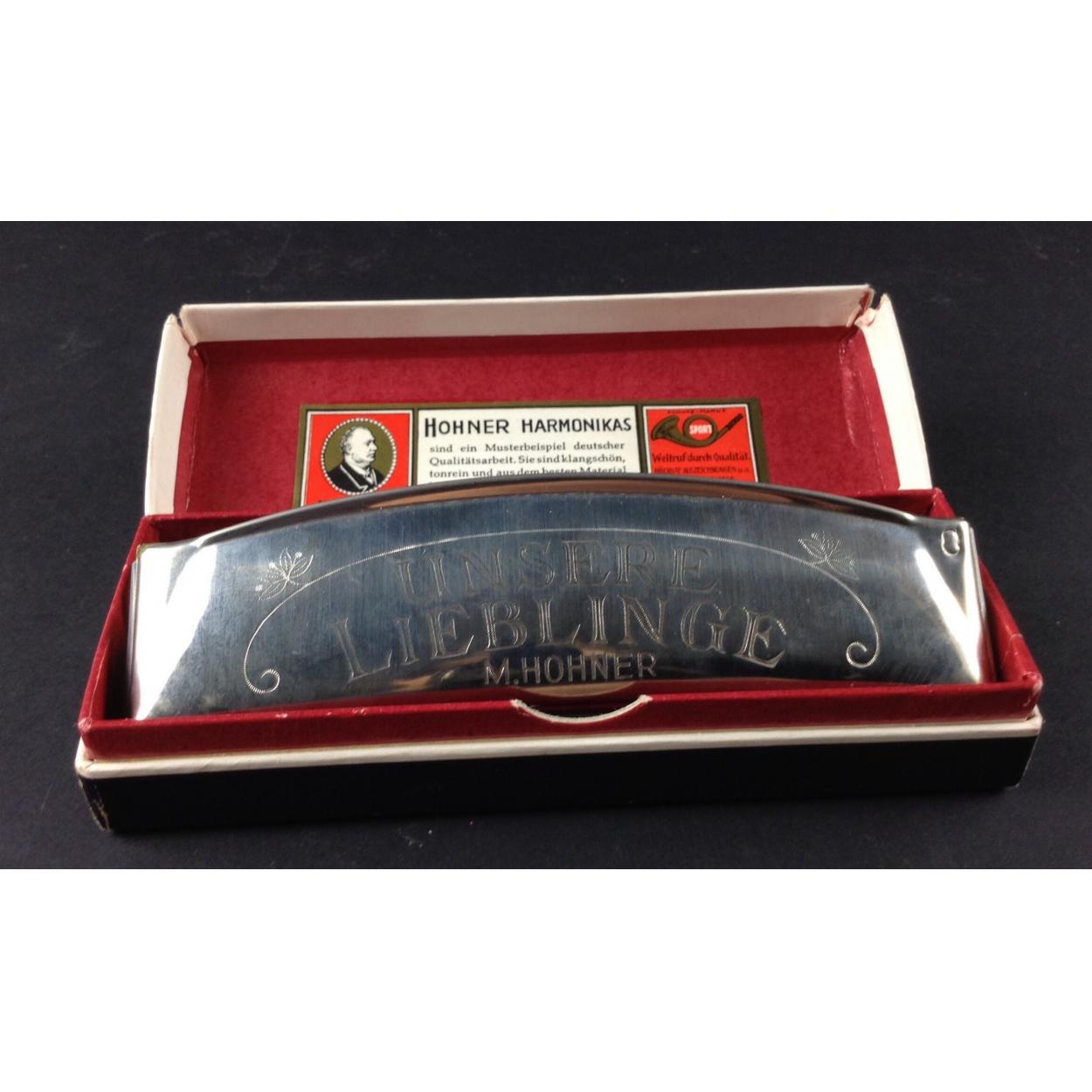 A vintage M. HOHNER UNSERE LIEBLINGE curved harmonica 6195/32 G in original box