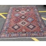 An IMMENSE VINTAGE hand made CARPET FROM PAKISTAN with a terracotta background and traditional border pattern showing a small patch of wear just off centre but otherwise in nice condition for its age! Dimensions 9.5ft x 11.5ft length