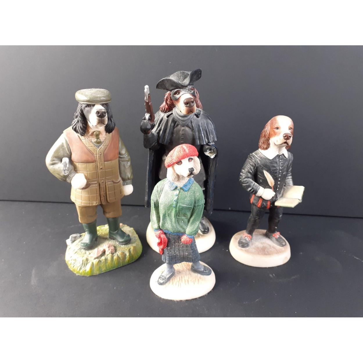 Three ROBERT HARROP Doggie People figures including Shakespeare liver/white, Game Shot, Dick Turpin (missing one arm) and a lady poodle from Country Companions