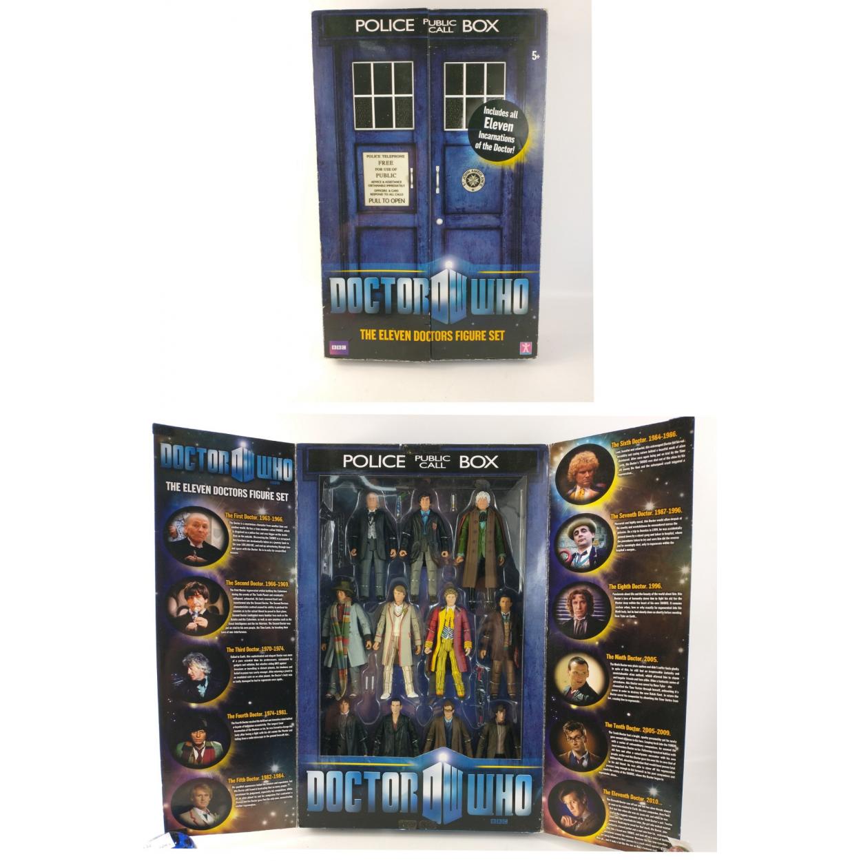 BBC DOCTOR WHO Collectibles. The Eleven Doctors Figure Set. Item 03418. Nicely presented. Looks like the figures have never been out of the box. Some tape repairs to rear of box. A very nice and unusual collectible that displays well.