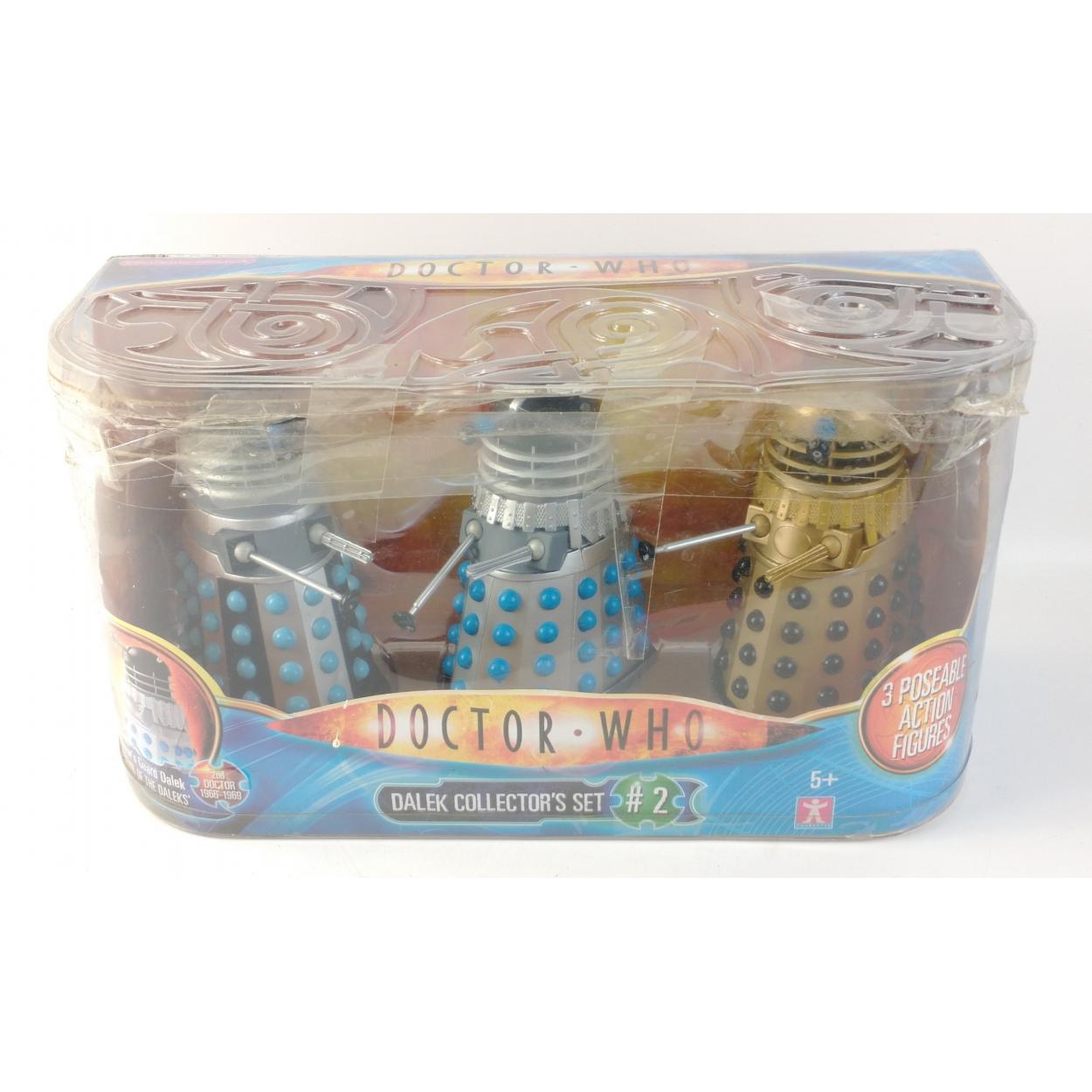 BBC DOCTOR WHO Collectibles. Daleks 3 Poseable Action Figures in box. NB. Item 03285 The box has damage with older tape repairs. A very nice set.